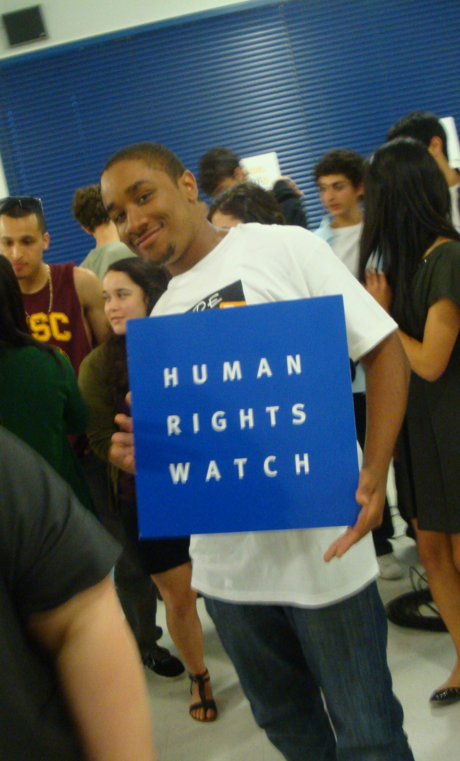 November 13, 2009: Pepperdine University’s International Justice Mission hosted a Human Rights Coffee House featuring musicians and artists performing pieces related to human trafficking, war crimes, ethnic cleansing, poverty, and oppression. Pepperdine students were able to have a personal connection with human rights issues by experiencing these performances. HRW STF participated in the event, providing students with information on the CRC and gathering signatures for letters to Senator Boxer and Secretary State Clinton urging action.