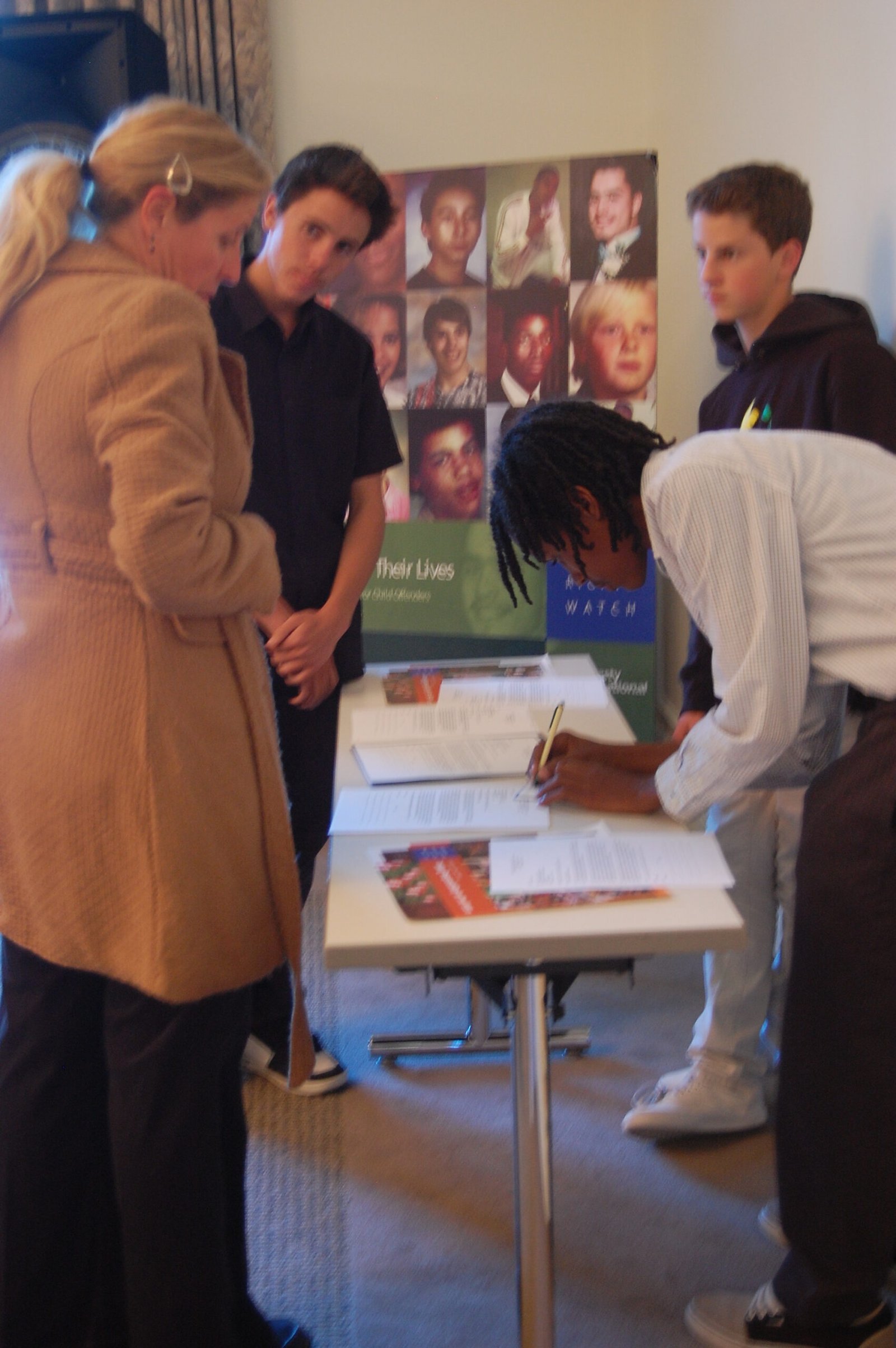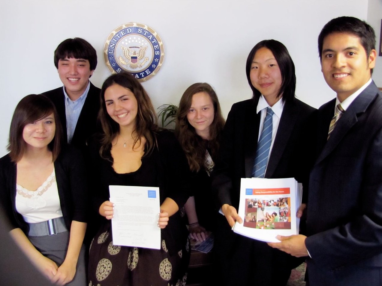 November 20, 2009: To celebrate the 20th Anniversary of the Convention on the Rights of the Child, a delegation of STF students from Pali, Crossroads, New Roads, and UCI visited Senator Boxer’s office to present over 3,000 signatures on letters of support to Senator Boxer. The students described various advocacy events STF has hosted for the CRC, stressed the importance of US ratification, and asked for advice on how to move forward in this campaign. Field Representative Juan Camacho was very helpful in answering questions and providing guidance for future efforts.