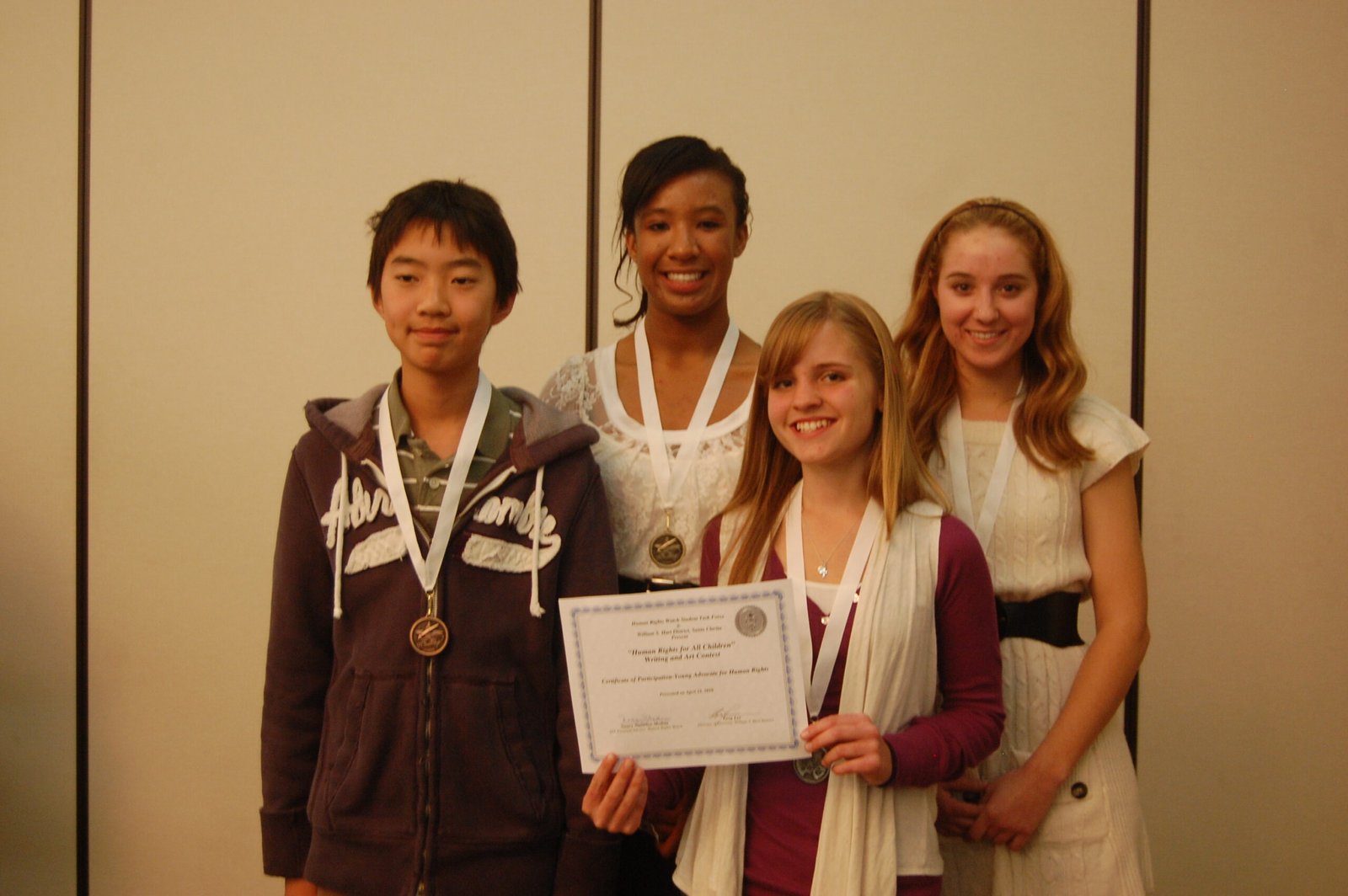 April 22, 2010: Canyon and Valencia STF celebrated the writing and art of their peers at the “Human Rights for All Children” Awards Night on Thursday, April 22. There were 91 entries on display Thursday night which are now available as part of a traveling art exhibit on children’s rights to local schools. The evening included STF student presentations on the Convention on the Rights of the Child and juvenile justice reform in California.