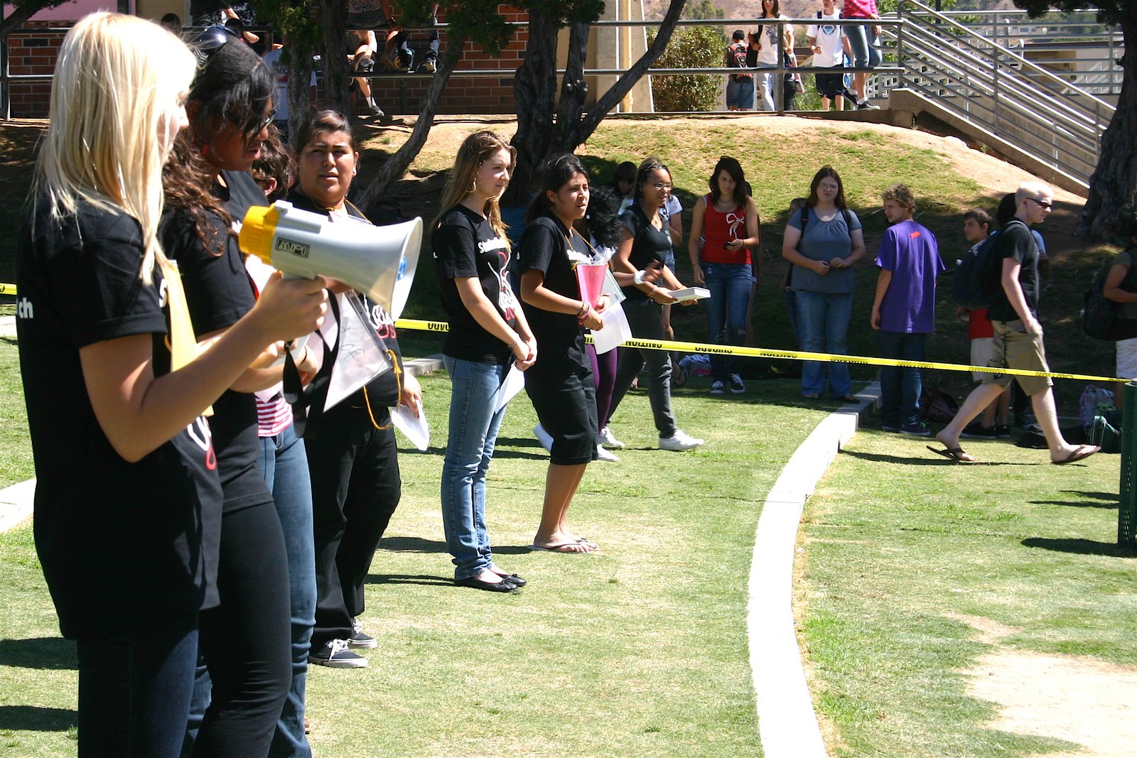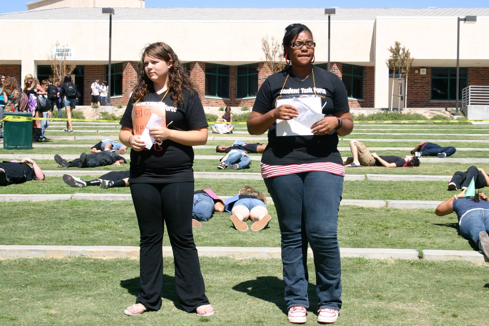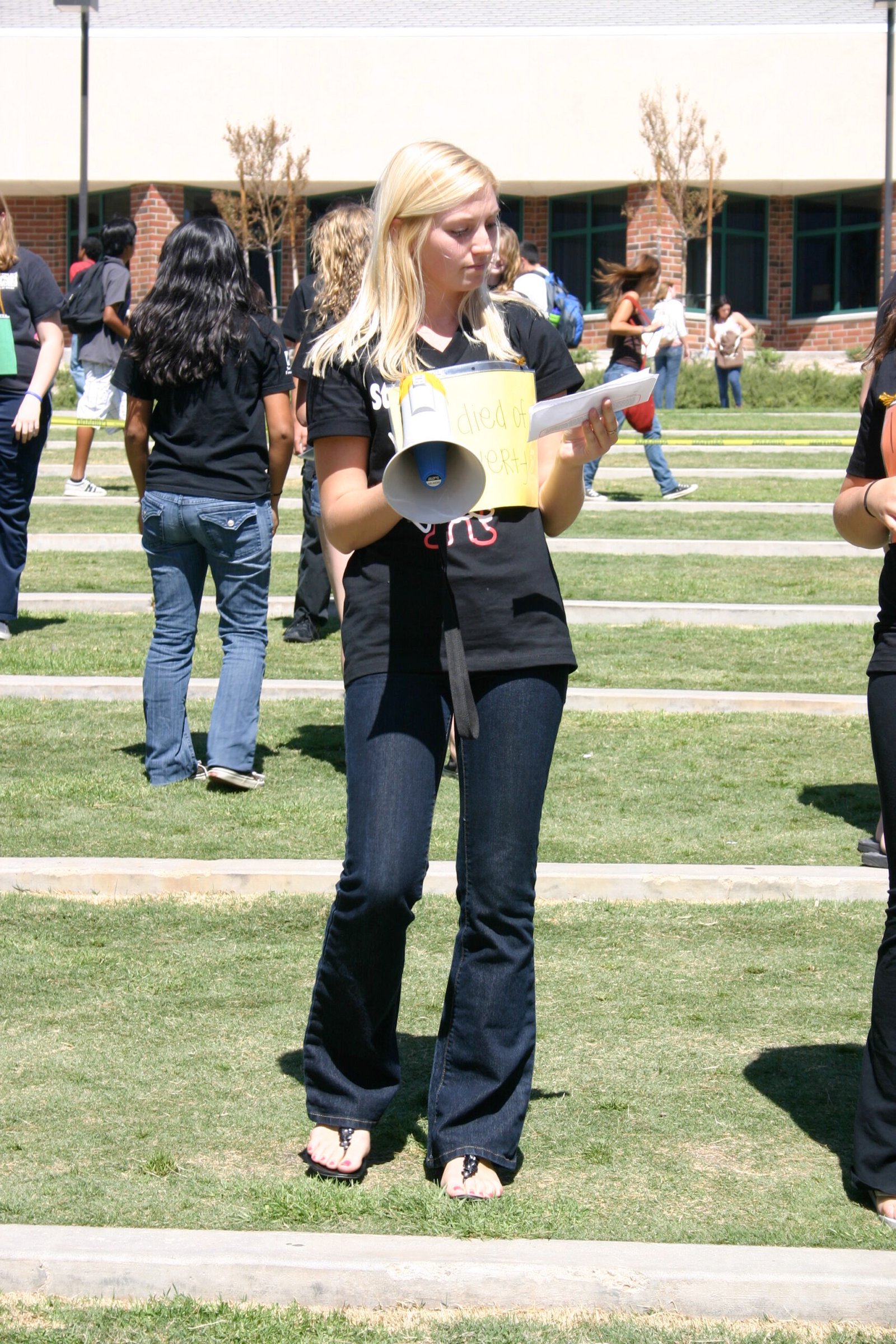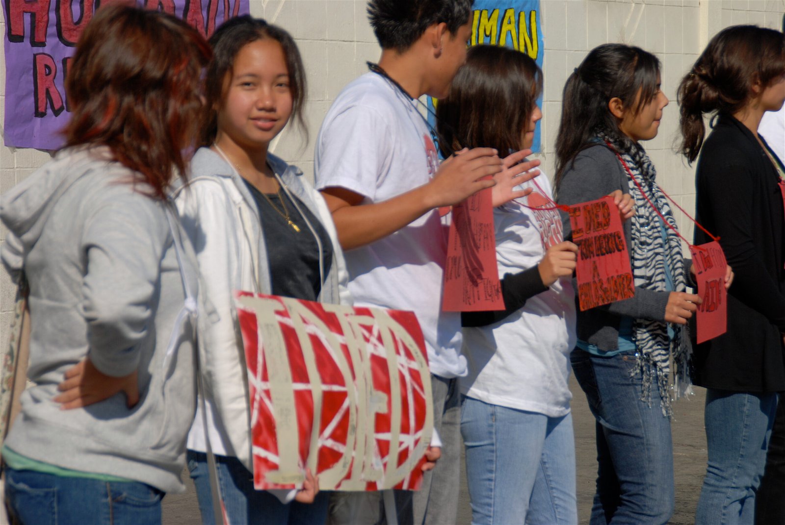 September 22, 2009: Canyon STF created awareness of children’s rights violations around the world by staging a Die-In.  Students lay on campus with signs that signified different ways to die from these violations: “I died of AIDS”, “I died as a child soldier”, “I died of a preventable disease”, etc.  The event garnered attention from the student body and STF students were able to begin educating their peers about the urgent need to protect children’s rights.