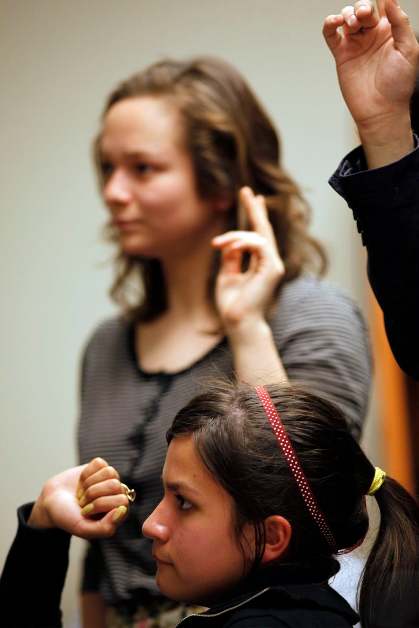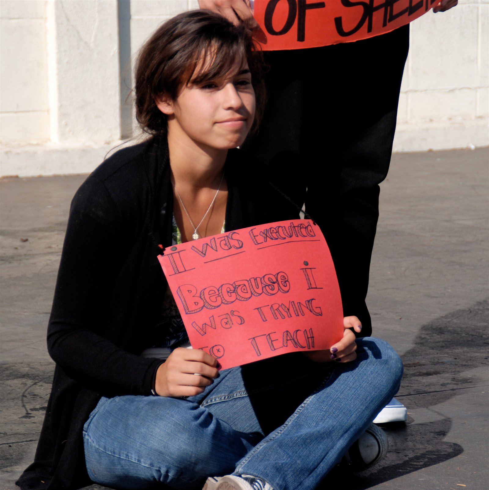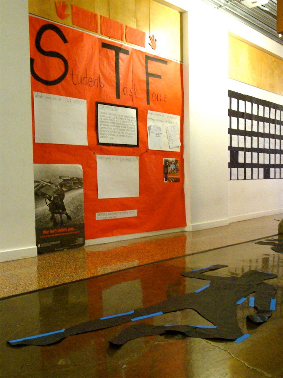 November 16, 2009: Continuing their campaign to ratify the CRC, Wildwood School STF hosted a Die-In during their school’s weekly assembly.  The STF lined the school’s halls with cut-outs of bodies and they also lay down in the assembly space with signs attached to themselves stating what human rights violation they had suffered.  By raising awareness to the many different ways in which children can be victims of human rights violations, the students underscored the importance of ratifying the CRC and helped their peers understand the significance of sending letters to Secretary of State Clinton and Senator Boxer. Photo by Christina Tajalli