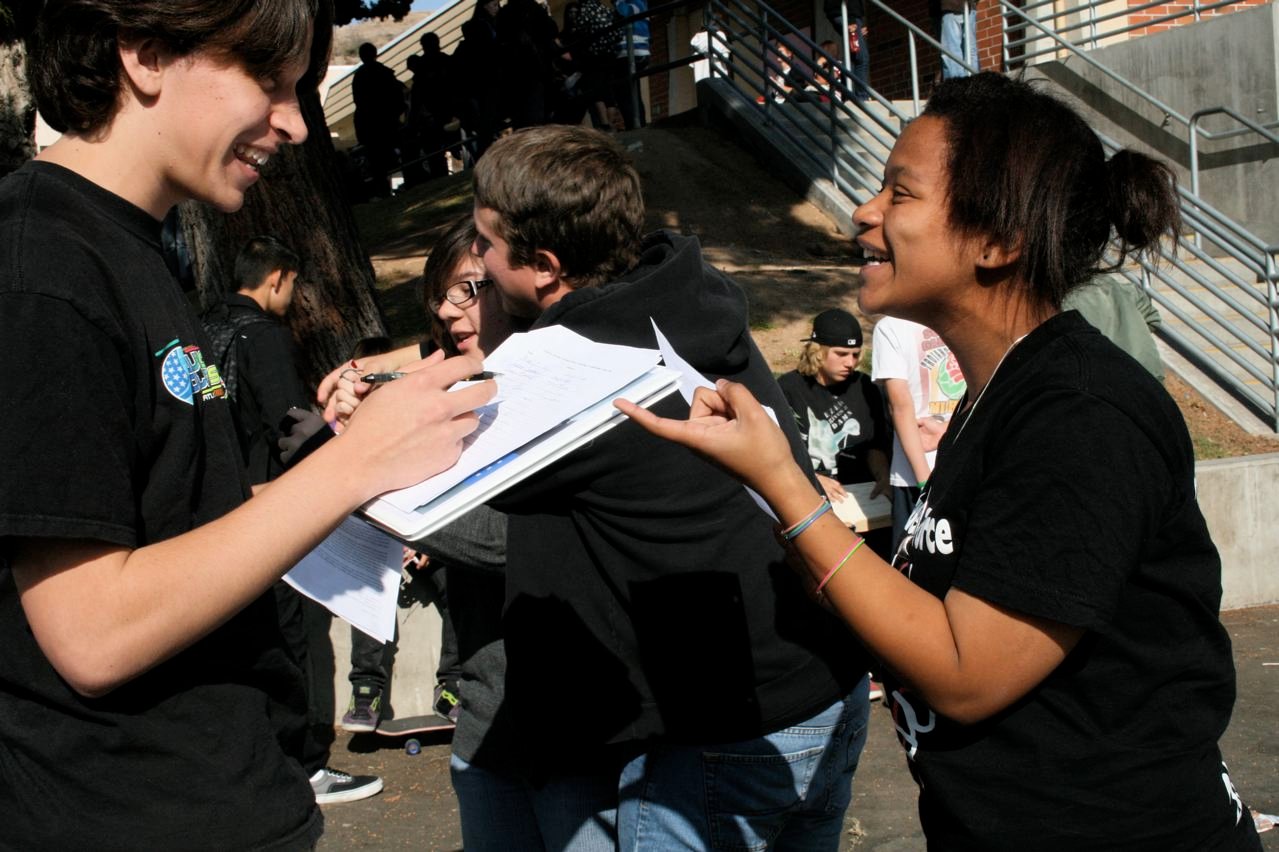 November 10, 2009: In collaboration with the Boys & Girls Club, Carson STF educated their school on the importance of U.S. ratification of the CRC on Tuesday, November 10. With student DJ’s blasting music in the background, Carson STF established a strong presence during lunch by tabling and trickling into the crowds to get signatures for our letters to Senator Boxer and Secretary Clinton. Photo by Gabriel Barreras