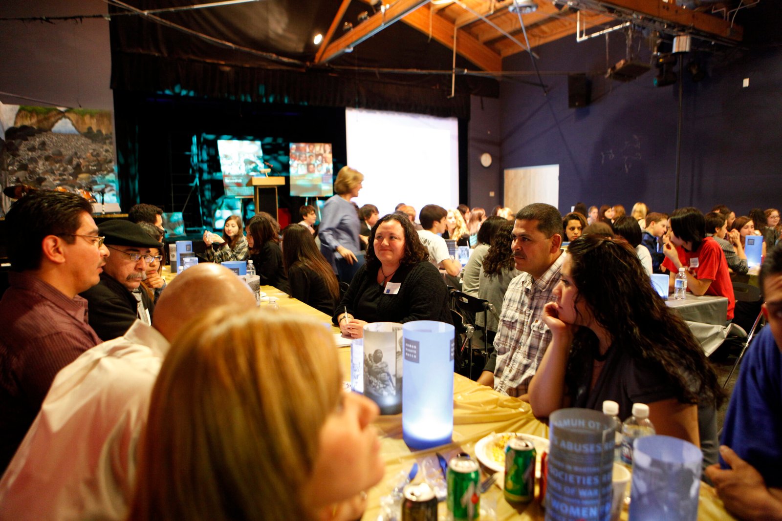 January 30, 2010: STF students from nine schools, teachers, parents, and supporters gathered at Wildwood School for a celebratory evening of juvenile justice advocacy. While enjoying an El Cholo taco bar, guests were serenaded by STF musicians while taking a look at the past 10 years of STF activism. The evening touched on human rights around the world and focused on human rights at home with a featured presentation by justice activist Javier Stauring and formerly incarcerated youth, Elias Elizondo. Students discussed how to effectively garner support for the Fair Sentences for Youth Act. The evening closed with a bon voyage for STF Intern Chris Price, as he departs for Zambia to participate in the Peace Corps.