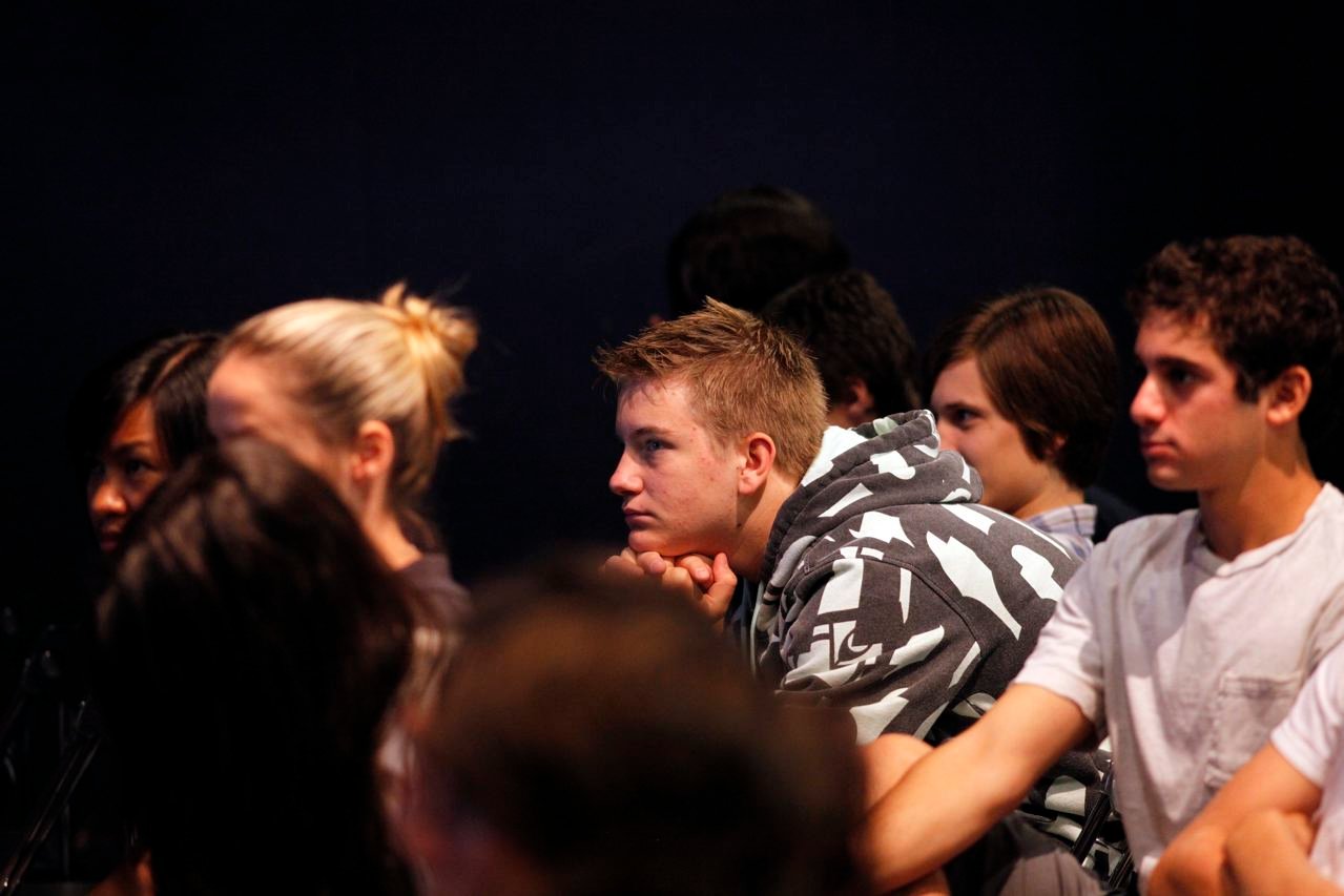 December 11, 2009: Crossroads SOUL hosted a juvenile justice assembly with presentations by Javier Stauring, Fernando Montes-Rodriguez, and Edwin Rivas. Javier discussed the sentencing of juveniles to life without the possibility of parole by sharing stories of juvenile offenders and explaining the CA legal system. Fernando Montes-Rodriguez and Edin Rivas noted the importance of education in reforming juvenile offenders. They noted the lack of opportunity as an influential factor in juvenile crime. Crossroads students were able to pledge their support for the Fair Sentencing for Youth Act SB 399 by signing letters to Assembly Member Brownley.