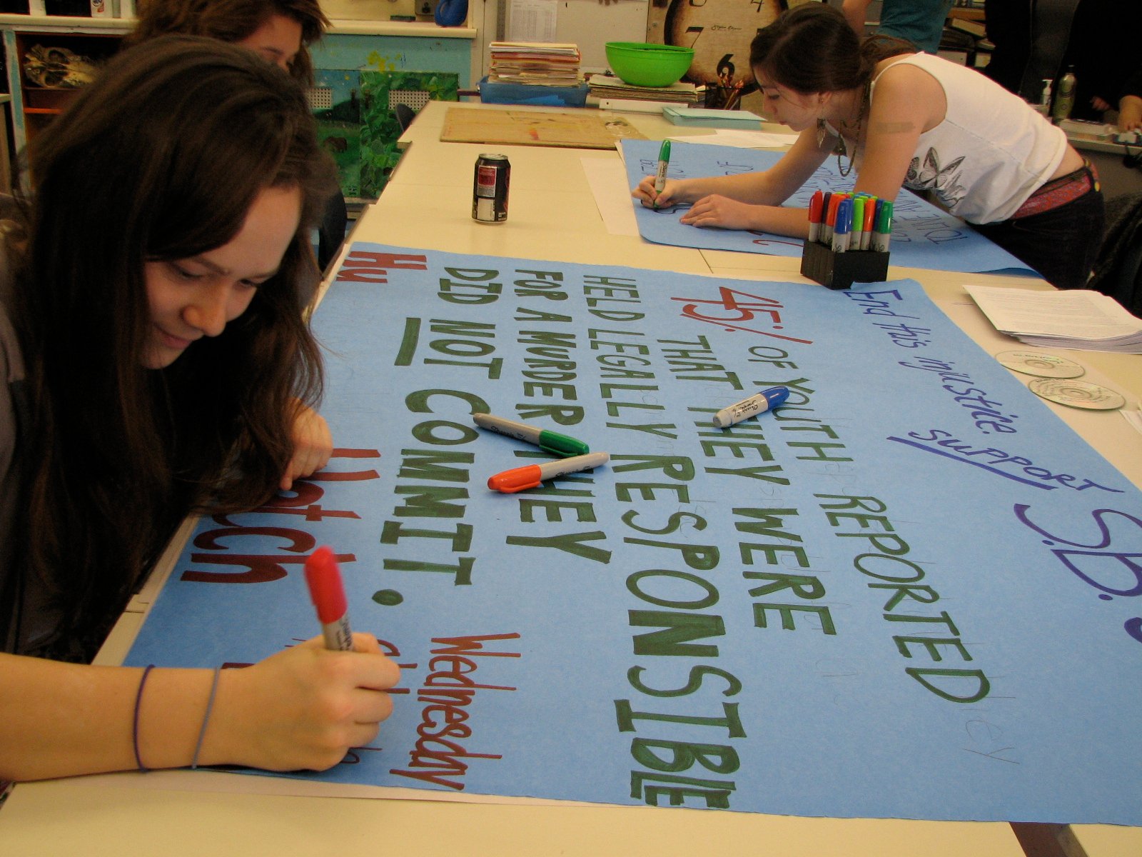 November 16-20, 2009: Pali STF launched an art campaign that included t-shirts and banners. They made classroom presentations on the importance of US ratification of the CRC and tabled during lunch. Students also made PA announcements with a different children’s rights every morning to promote their events.
