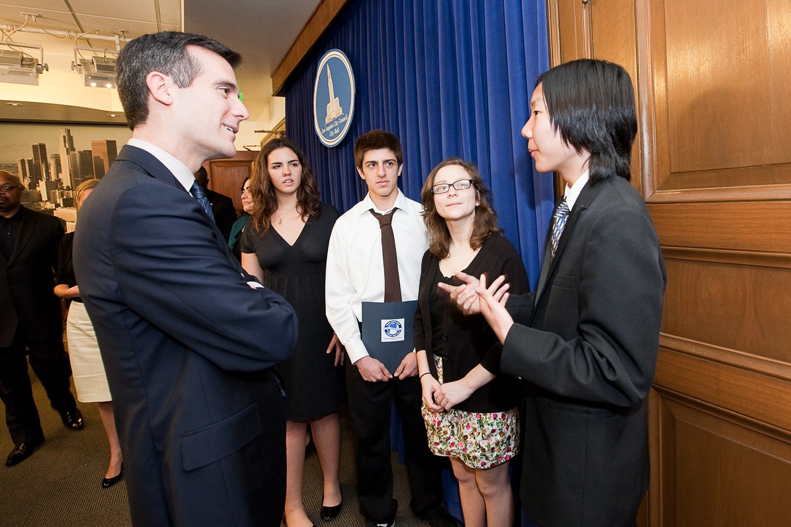 March 19, 2010: STF student delegates addressed the LA City Council regarding the Convention on the Rights of the Child (CRC) and urged the Council to pass a resolution sponsored by Council Members Garcetti and Rosendahl to adopt the CRC. The Council unanimously voted yes! The City of Los Angeles has pledged to uphold the principles of the CRC in order to promote and protect children’s rights across the city.
